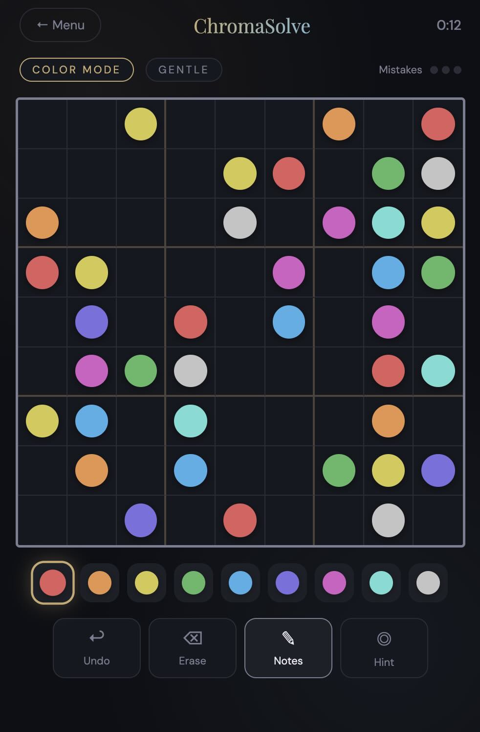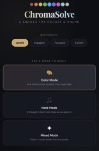 That’s ChromaSolve. Nine colors instead of nine digits. Same rules, completely different feel. (PLAY NOW)